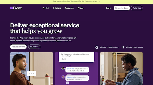 Front is a collaborative email platform where teams can manage shared inboxes and reply to customer service emails in real-time. It also integrates with CRMs and help desk tools to view each customer conversation fully.