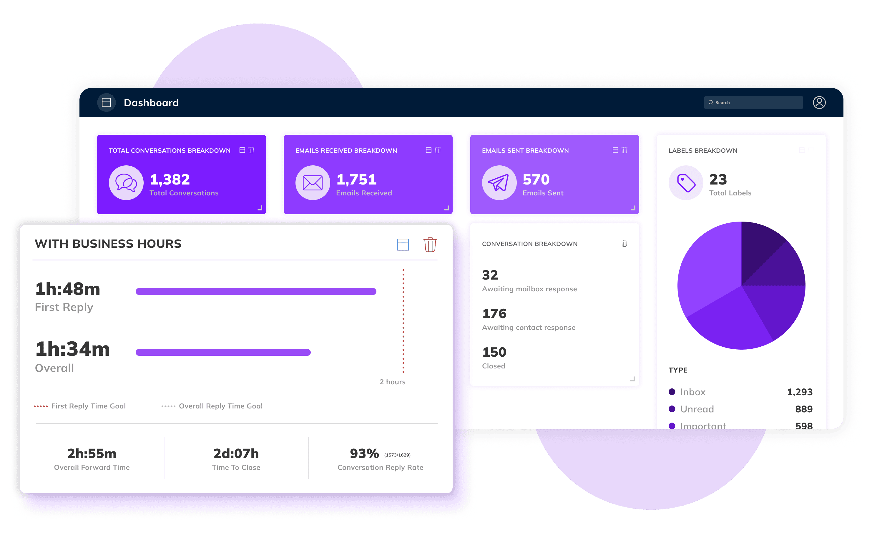 Track reply times for every single email in your customer-facing teams’ inboxes – both individual and shared mailboxes. Set goals to measure your team’s performance in real-time.